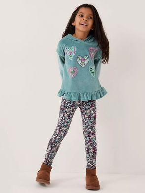 Kids' Embellished Velour Hoodie & Floral Leggings Set, Green