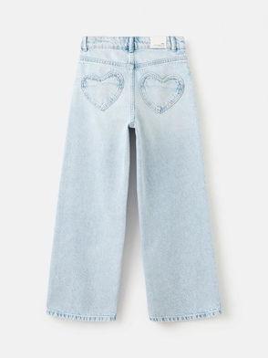 Kids' Denim Heart Patch Wide Leg Jeans, Blue