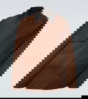 Oversized-Collar Sheepskin Leather Aviator Jacket