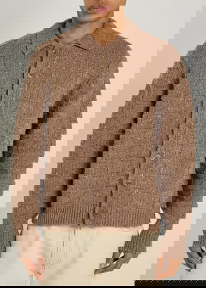 Wide-Rib Zip-Through Cardigan In Chocolate Brown