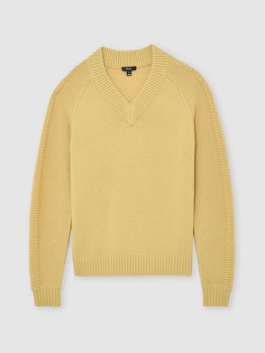 Wool-Blend Rib-Detail V-Neck Jumper In Buttercup Yellow