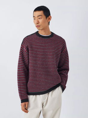 Wool Blend Fairisle Crew Neck Jumper, Navy/Multi