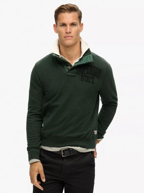 Vintage Athletic Half-Button Cotton Jumper, Academy Dark Green