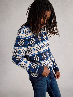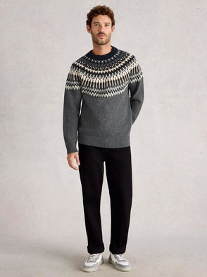 Claude Crew Neck Fair Isle Jumper, Dk Grey