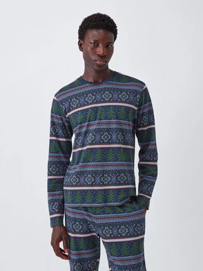 Men's Family Fairisle Jersey Pyjamas, Blue Navy
