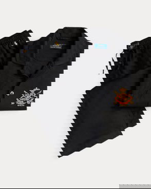 Cotton Blend Long Sleeve Pyjama Top, Navy Blue