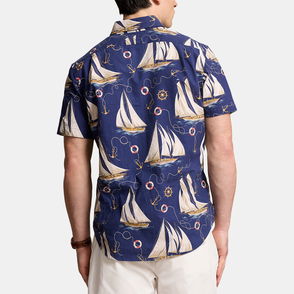 Brand-Print Short-Sleeves Cotton-Poplin Shirt