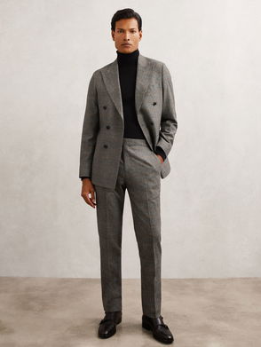 Wool Double-Breasted Check Tailored-Fit Suit Blazer In Charcoal Grey