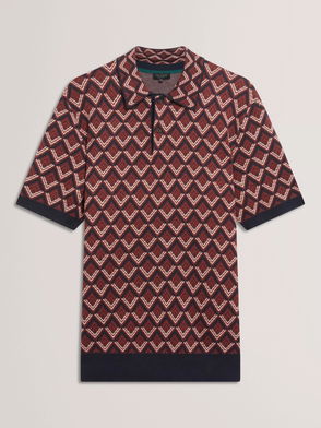 Melvvin Geometric Pattern Short Sleeve Polo Jersey Cardigan