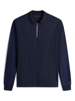 Cotton Long Sleeve Zip Neck Polo Shirt