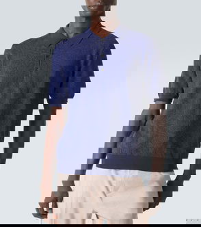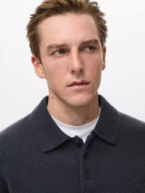 Merino Wool Open Collar Polo Shirt In Frost Blue