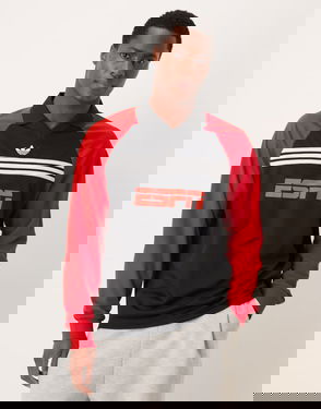 Porth Rugby Style Long Sleeve Polo Top, Navy/White
