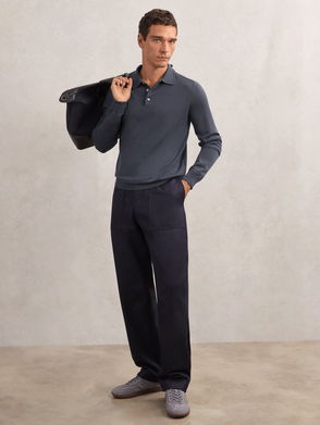 Merino Wool Long-Sleeve Polo Shirt In Midnight Navy