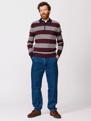 Belmont Knitted Rugby Top, Grey Marl/Burgundy Stripe