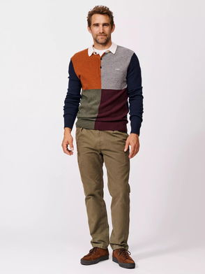 Kendal Knitted Harlequin Wool Rugby Top, Multi