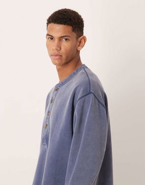 Abercrombie & Fitch Henley Sweatshirt In Washed Indigo