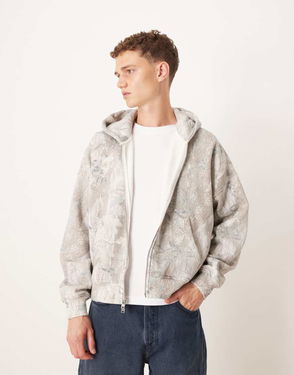 Abercrombie & Fitch Double Zip Front Pocket Hoodie In Light Camo Print