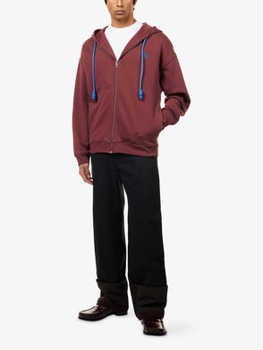 Leather-Drawstring Relaxed-Fit Cotton-Jersey Hoodie