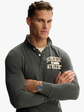 Vintage Athletic Long Sleeve Polo Shirt, Dark Shadow Grey