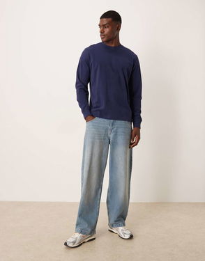 Abercrombie & Fitch Premium Heavyweight Long Sleeve T-shirt In Navy Wash