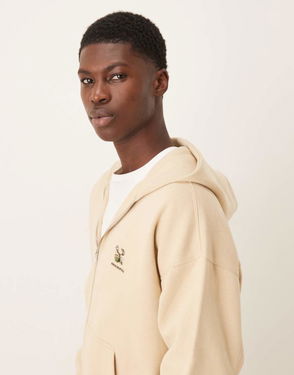 Abercrombie & Fitch Chest Logo Zip Hoodie In Beige