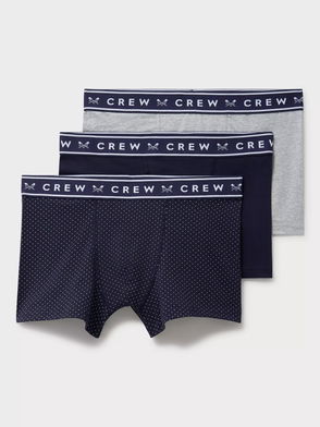 Cotton Blend Bold Waistband Trunks, Pack Of 3, Navy/Multi