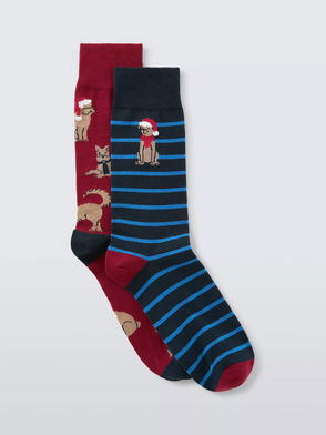 Dog Christmas Socks, Pack Of 2, Red Multi