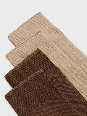 Birip Cotton Blend Ribbed Socks, Pack Of 2, Beige/Multi