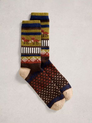 Made In Italy Fairisle Cotton Mix Socks, Natural