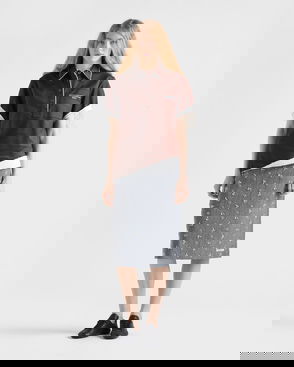Polo shirt, Cotton-blend, Ribbed, Crepe de chine trims, Pointelle trims, Slit cuffs, Button fastenings along front, Lightweight knit.