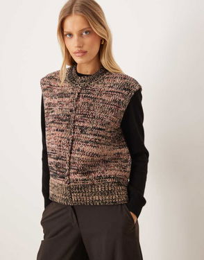 Vest, Two-tone, Knitted, Button-embellished, Button fastenings along sides, Mid-weight knit.