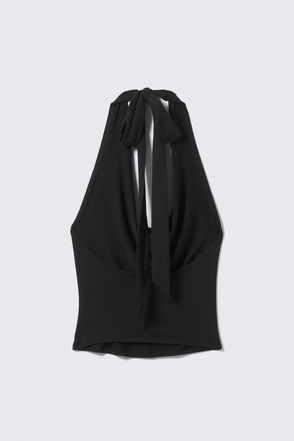 The Tech String Crop Top is a sleek style made from a high-stretch jersey to hug the chest. It ties behind the neck and at the back, alongside a hook-and-eye closure.