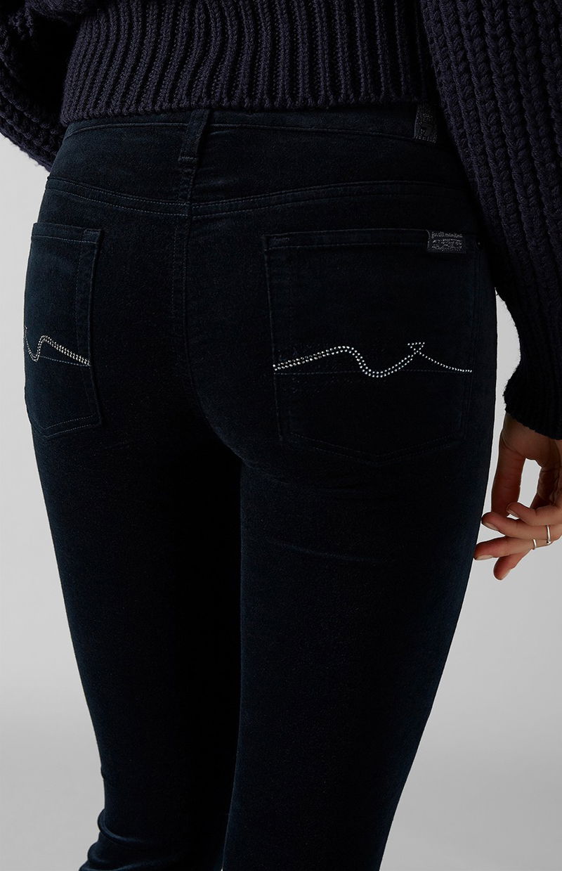 Create a luxurious laidback look with 7 For All Mankind’s The Skinny in dark blue Twilight velvet. The jeans are skinny from top to bottom with a mid-rise waist, shorter inseams and just the right amount of stretch.