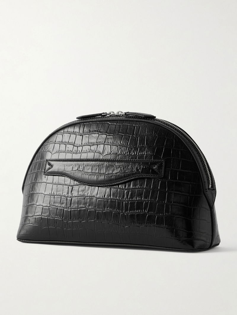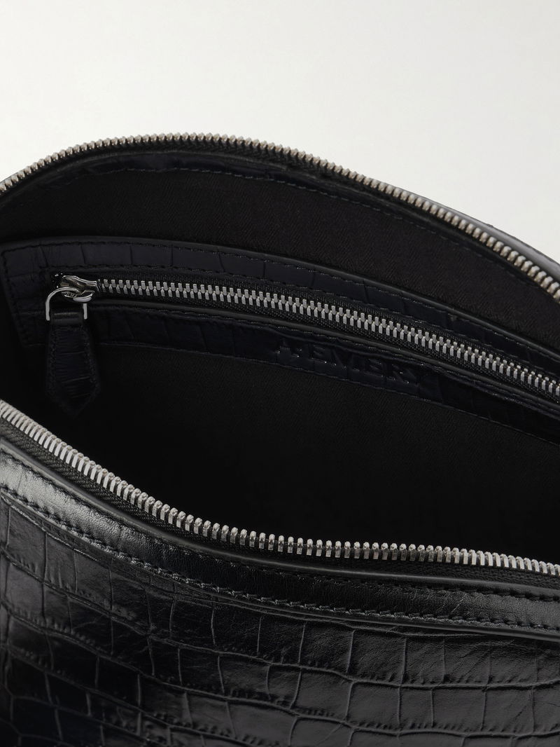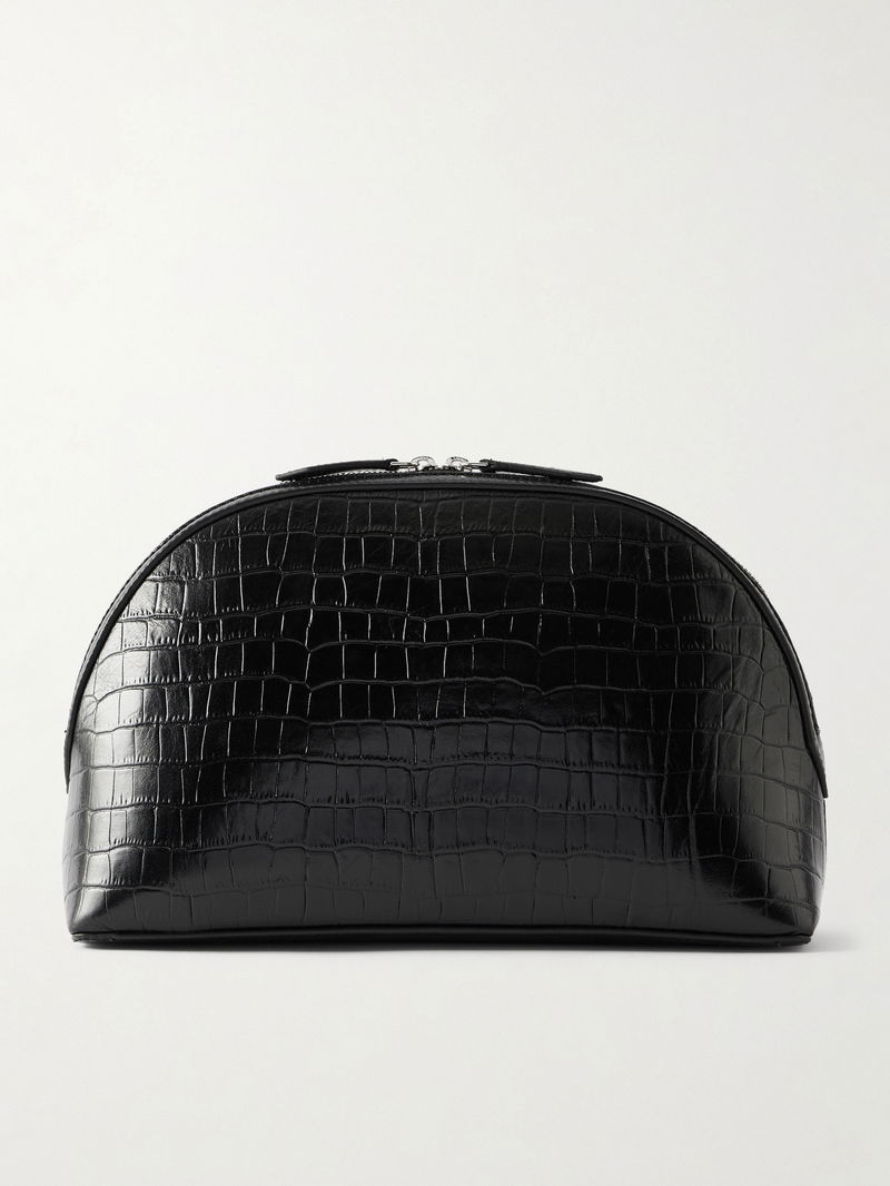 A Emery promises longevity 'in form and function' with its thoughtful designs. This 'Halloran' clutch is made from croc-effect leather with an artfully curved shape. The main compartment will comfortably fit a small notebook, phone and cosmetics.