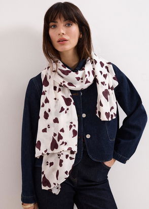 Rectangular wool flannel scarf in purple.· Logo embroidered at face· Fringed detailing at ends.