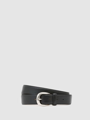 Grained leather belt in black.