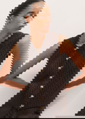 Loose-fit knit virgin wool vest.· Rib-knit V-neck, hem, and armscyes· Cable-knit detailing at front.