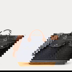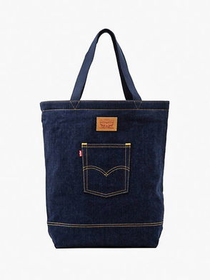 Non-stretch denim tote in indigo.· Fixed twin shoulder straps· Logo printed at face· Patch pocket at interior · Unlined·