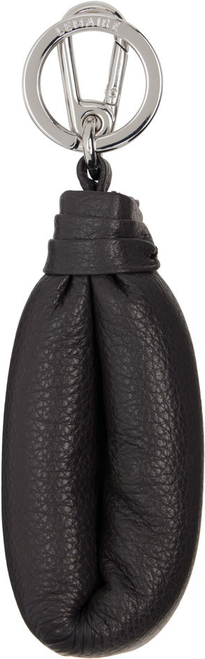 Buffed leather keychain in tan. Logo stamp in silver-tone at face. · Fixed leather strap· Concealed hinged O-ring at bottom · Silver-tone hardware·