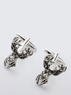 Open cuff bracelet in silver-tone. Logo hardware at face.