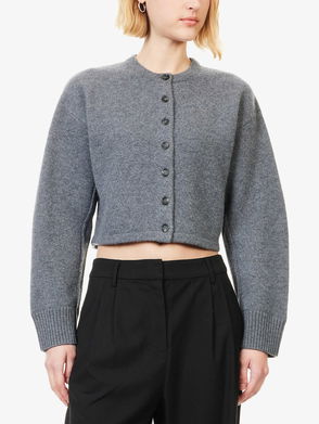 Brushed knit alpaca- and merino wool-blend cardigan.· Rib knit crewneck, placket, hem, and cuffs· Button closure· Mother-of-pearl hardware.