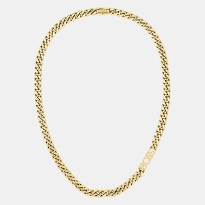 Curb chain necklace in gold-tone brass.