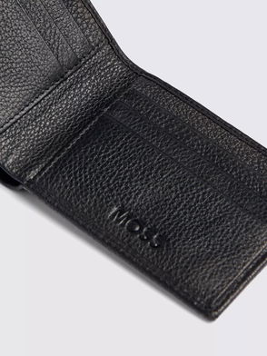 Saffiano leather bifold wallet in black.· Logo stamp at face· Four card slots· Two note slots· Press-stud coin pouch· Twill lining·