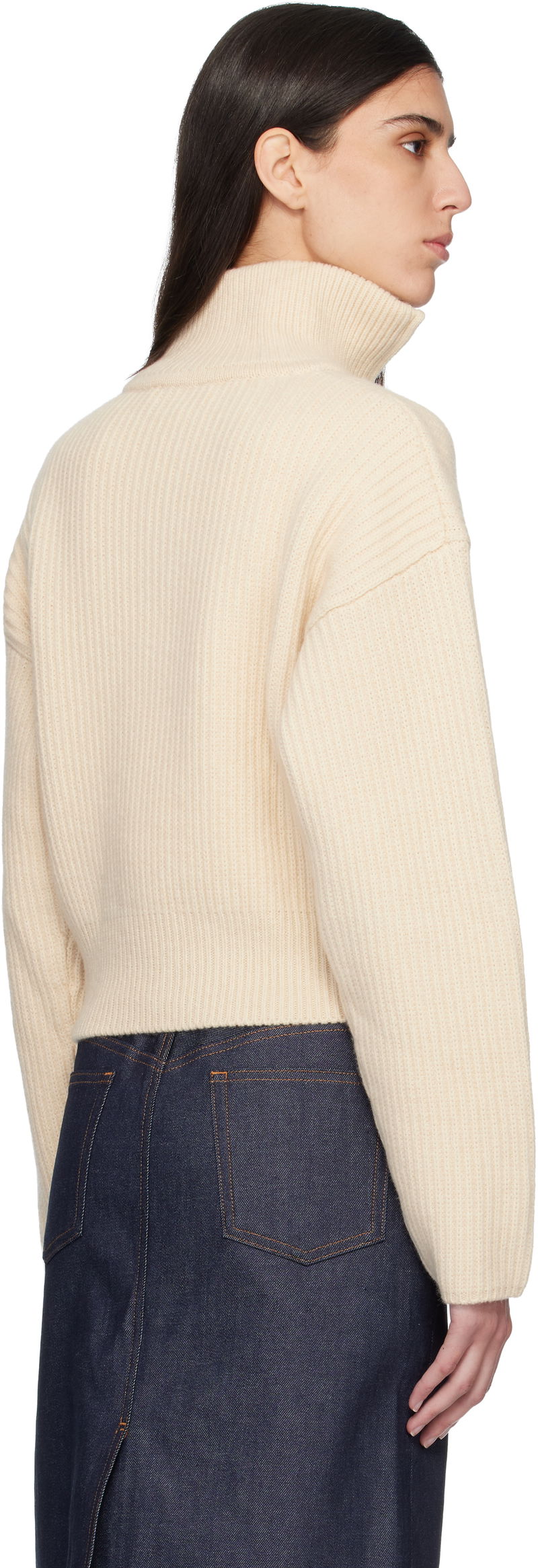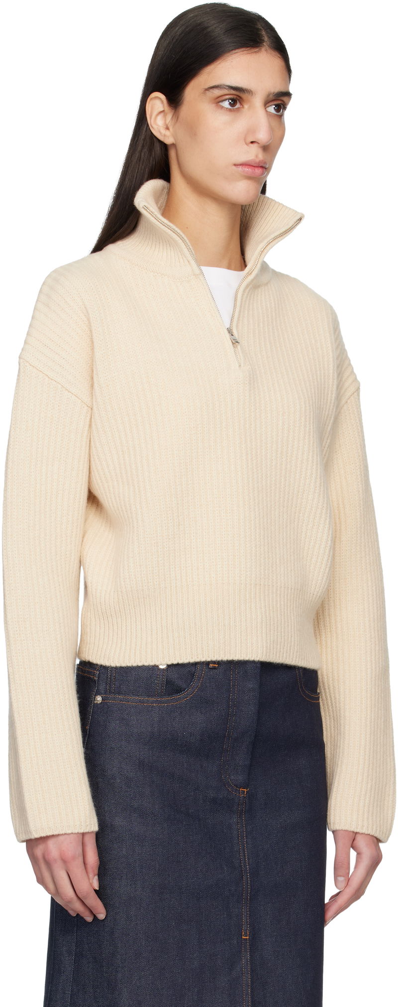 Rib-knit wool- and cashmere-blend sweater. Stand collar. Half-zip closure. Dropped shoulders.