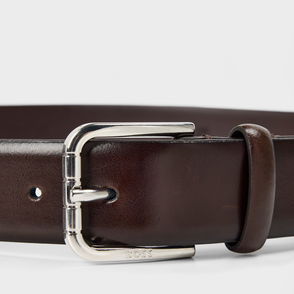 Buffed calfskin belt. Keeper loops at length· Pin-buckle fastening. Silver-tone hardware.