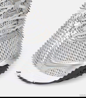 Low-top grained faux-leather and faux-suede sneakers in white and gray.· Perforated detailing at toe· Lace-up closure· Logo embroidered at padded tongue· Padded collar· Metal eyelets at inner side· Logo printed at heel counter· Terrycloth lining· Treaded rubber sole.