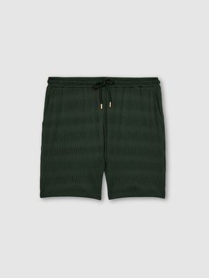 Cotton gabardine shorts.· Belt loops· Four-pocket styling· Zip-fly · Pleats at front · Creased legs.