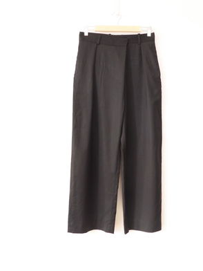 Wide-leg virgin wool flannel trousers.· High-rise· Belt loops· Three-pocket styling· Zip-fly· Pleats at front· Creased legs· Faux-horn hardware.