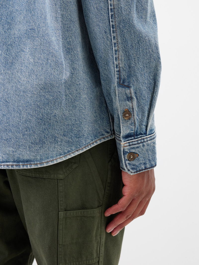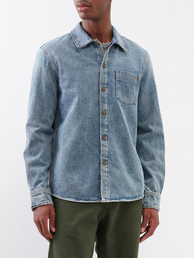 A.P.C.'s workwear-inspired Vittorio shirt is cut from washed and faded blue denim for a well-worn feel, then accented with a patch pocket.