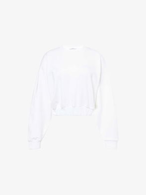 A.W.A.K.E. MODE's designs often feature functional details that can be adjusted to alter the shape - this sweatshirt has a corset-inspired hem with buttons to adjust the shape. It's cut from organic cotton-jersey with slouchy long sleeves.